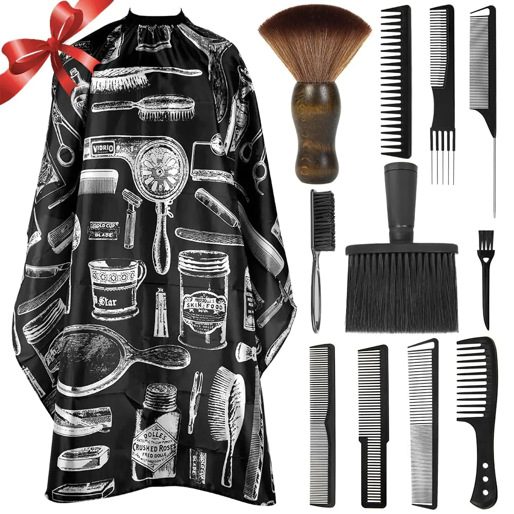 [【Package Content】you will receive 12pcs hairdressing tools includes 7pcs barber styling hair combs1pcs hair cutting cape2pcs Neck Duster Brush 1pcs Blade Cleaning Brush1pcs Shaver Brush meet your different styling needs. "【Carbon Comb set】: The Comb is Made of Carbon Fiber Anti-Static and Heat-Resistant High-duty Elasticitylight weight .Wont scratch your scalp or get caught in knots - Great for adding volume to straight or wavy hairWorks well with hair styling and chemical treatments .All the basic styling tools you need! 7 different combs in all!" 【Waterproof Barber Cape】Professional hair cutting hairdressing gown adopt anti-static heat resistant & chemical resistant anti-wrinkle no pilling resistant to scratch premium quality fabric. The cutting hairs to easily shake off instead of being caught in the fibers. Good material with fine workmanship. 【Neck Duster Brush】 Made of fiberLint-free exciting beautiful design provide a very comfortable grip convenient and practical easy to cleanperfect accessory for all barbers & hair stylist.The handle material is advanced wooden easy to grasp and sweep your broken hair quickly. 【3 Multifunction Cleaning Brush】These barber cleaning kit is great for cleaning clippers neck head beard. It help clean and removes all of the hair from between the blades and sweep cutted hair.These brushes have different sizes and functions they can play different roles in cleaning.]