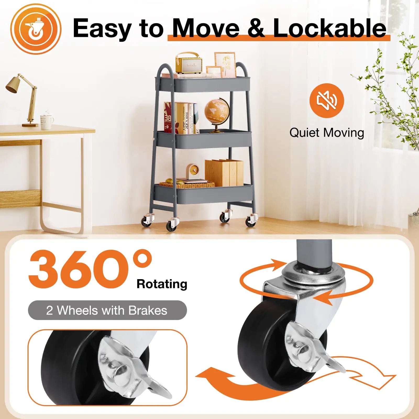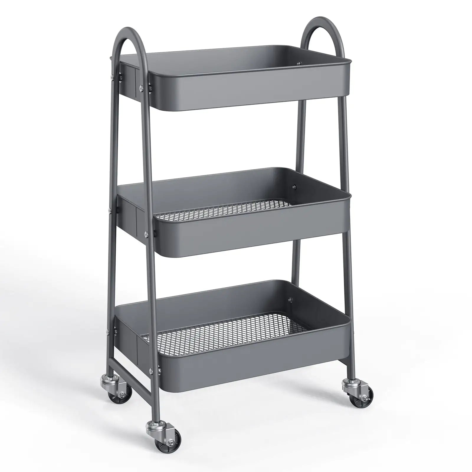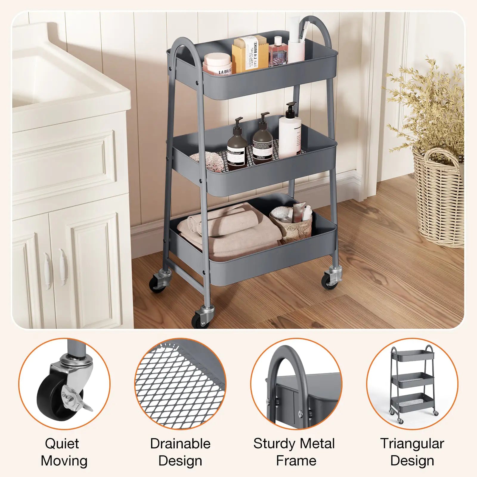 Product Name:3 Tier Small Rolling Cart, Metal Utility Storage Organizer Kitchen Trolley Bathroom Laundry Room Bar Office Shelves